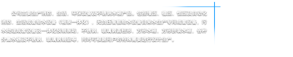 江蘇燁達(dá)環(huán)保設(shè)備有限公司坐落在江蘇省鹽城市建湖縣城,東臨黃海之濱,背倚蘇北平原,處于長三角經(jīng)濟(jì)一體化和江蘇沿海開發(fā)兩個(gè)國家級戰(zhàn)略疊加區(qū)域內(nèi),素有“水鄉(xiāng)明珠”美稱。我公司鑒定走“產(chǎn)、學(xué)、研”相結(jié)合的路子,是江蘇省供水設(shè)備行業(yè)的大型企業(yè)。公司以“一流的管理,一流的研發(fā)設(shè)計(jì),一流的質(zhì)量意識,一流的售后服務(wù)”為宗旨,嚴(yán)格控制原材料質(zhì)素,講求“品質(zhì)是企業(yè)的生命力”的理念,嚴(yán)把質(zhì)量關(guān),從而為客戶提供優(yōu)質(zhì)的供水設(shè)備。公司主要生產(chǎn)消防、生活、環(huán)保設(shè)備及不銹鋼水箱四大類產(chǎn)品。包括增壓、穩(wěn)壓、恒壓及自動(dòng)化消防、生活成套給水設(shè)備(箱泵一體化),無負(fù)壓智能給水設(shè)備自來水生產(chǎn)專用成套設(shè)備,污水處理成套設(shè)備及一體化預(yù)制泵站,不銹鋼、玻璃鋼圓柱形、方形水箱、方形拼裝水箱,各種分集水器及不銹鋼、玻璃鋼制品等,同時(shí)公司可根據(jù)用戶的特殊需要進(jìn)行設(shè)計(jì)生產(chǎn)。燁達(dá)人將以科學(xué)的管理、精湛的技術(shù)、可靠的質(zhì)量、優(yōu)良的品質(zhì)向社會(huì)各界服務(wù),我們始終坦誠相見,我們當(dāng)然走在最前面······ |